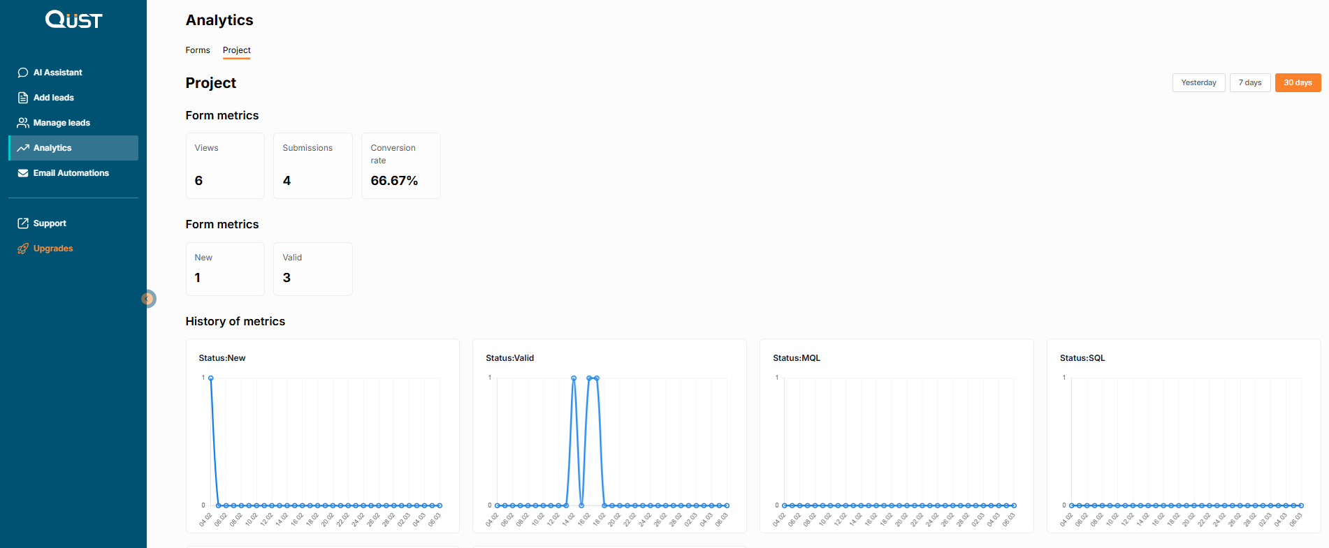 Here you can find information about the total number of views, submissions, and the conversion rate.