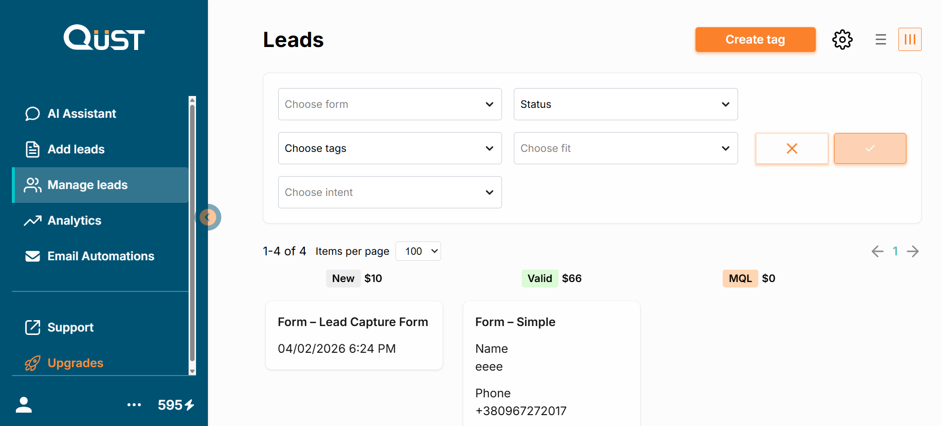 Forms and leads are tightly integrated within your project, enabling you to track changes and analyze data related to your work in real-time.